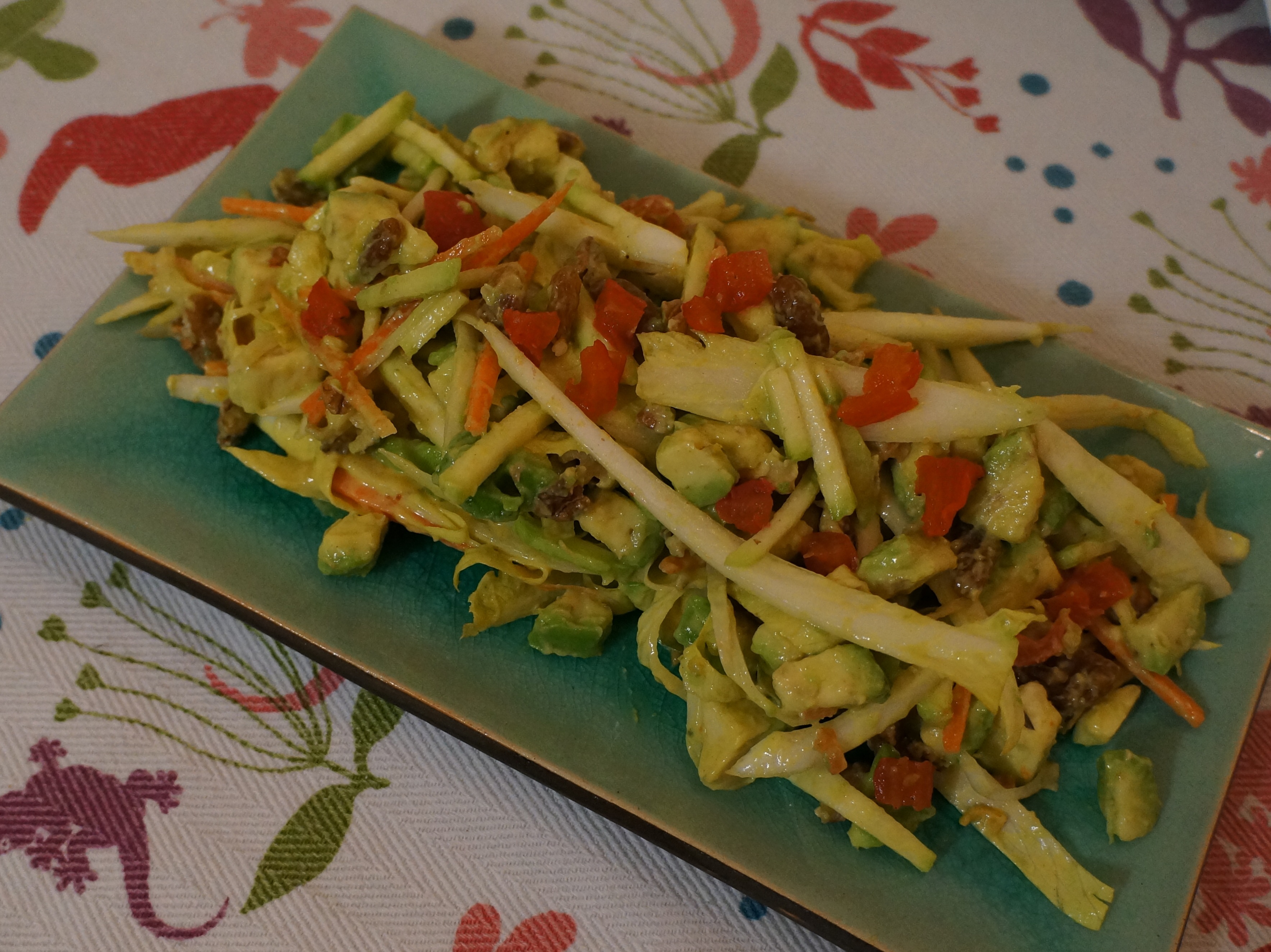 En même nous avons vraiment trouvé cela très bon du coup une grande envie de la partager avec vous m’est venue. Cela fait beaucoup d’envies me direz vous ! Je trouve aussi. Ce doit être le virus de Noël ! Et le goût dans tout cela ? L’endive est croquante accompagnée de carottes, noix et de courgettes. La sauce à base de savora sans vinaigre est douce et légère. L’avocat apporte une touche d’onctuosité avec les tomates confites. Personnellement c’était exactement ce dont je rêvais en 15 minutes le soir. Lire la suite de Salade Vitamine d’Hiver Sauce Savora