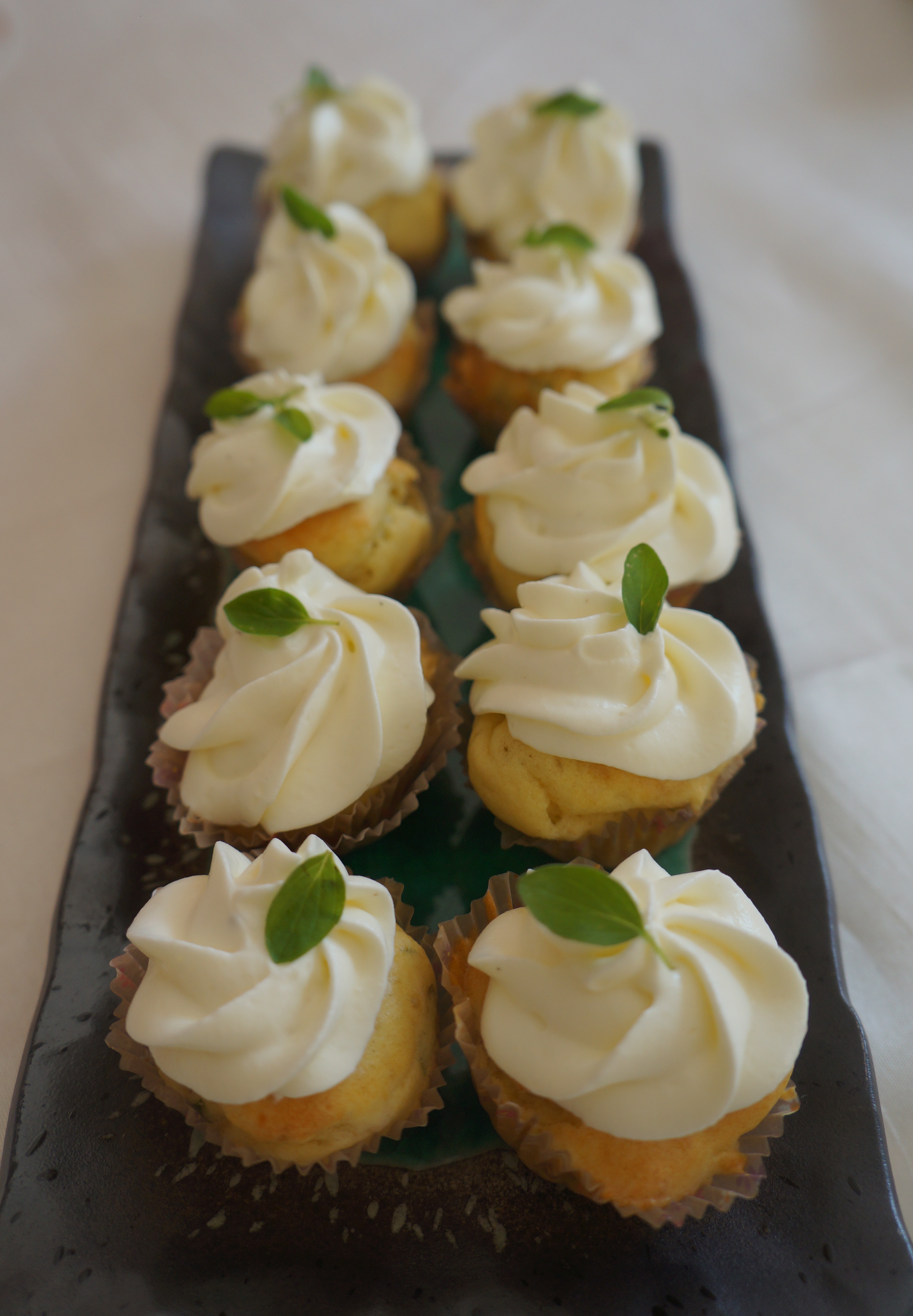 Le fromage de brebis change agréablement du fromage de chèvre tout en ayant des propriétés similaires. Ma maman garde un souvenir d’enfance merveilleux autour du lait de brebis, ses yaourts et ses fromages. Elle a eu à cœur de nous le faire découvrir. J’adore le fromage de brebis frais simplement étalé sur une tranche de pain. Cela faisait longtemps que j’avais envie de trouver une recette qui lui fasse honneur et qui rappelle sont petit goût fin et agréable tout en lui associant des aromates et du moelleux.L’origan est superbe cette année. Frais il a cette magnifique couleur verte et son goût est plus doux que séché. Il se marie bien avec le fromage de brebis. Des pignons dans la pâte apportent une légère touche de croquant. Le tout donne un cupcake salé que l’on confondrait aisément à l’aspect avec un cupcake au citron et qui ravit nos papilles à l’apéritif dans sa version mini. C’est tout frais et tout doux.