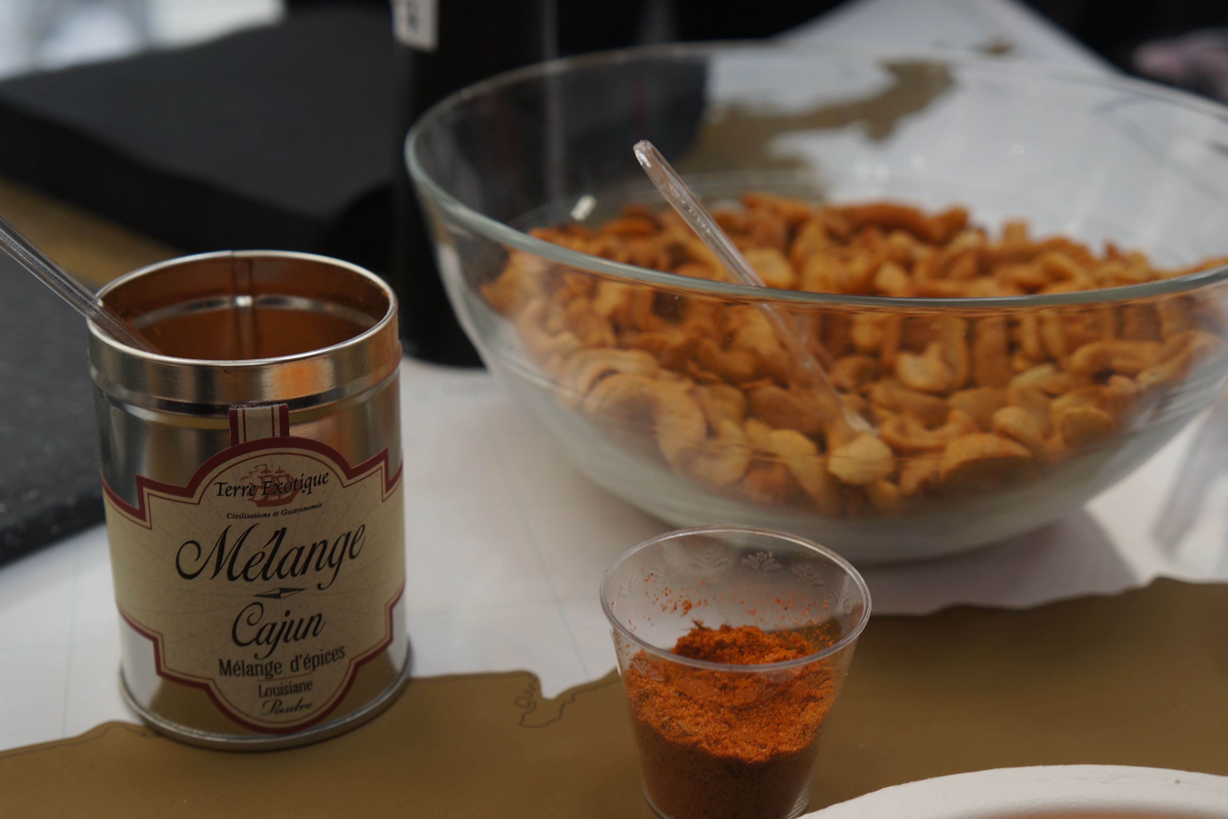 Commençons par l’apéritif que diriez de noix ce cajou réhaussées par des épices cajun. Je ne sais pas pour vous mais moi j’en ai tout un stock à la maison les boxes culinaires en ont livré beaucoup …… C’est épicé juste ce qu’il faut et cela réhausse les noix de cajou d’une jolie couleur flamboyante. A mon avis concassé sur un riz ou une viande grillée marinée cela peut être un délice aussi.