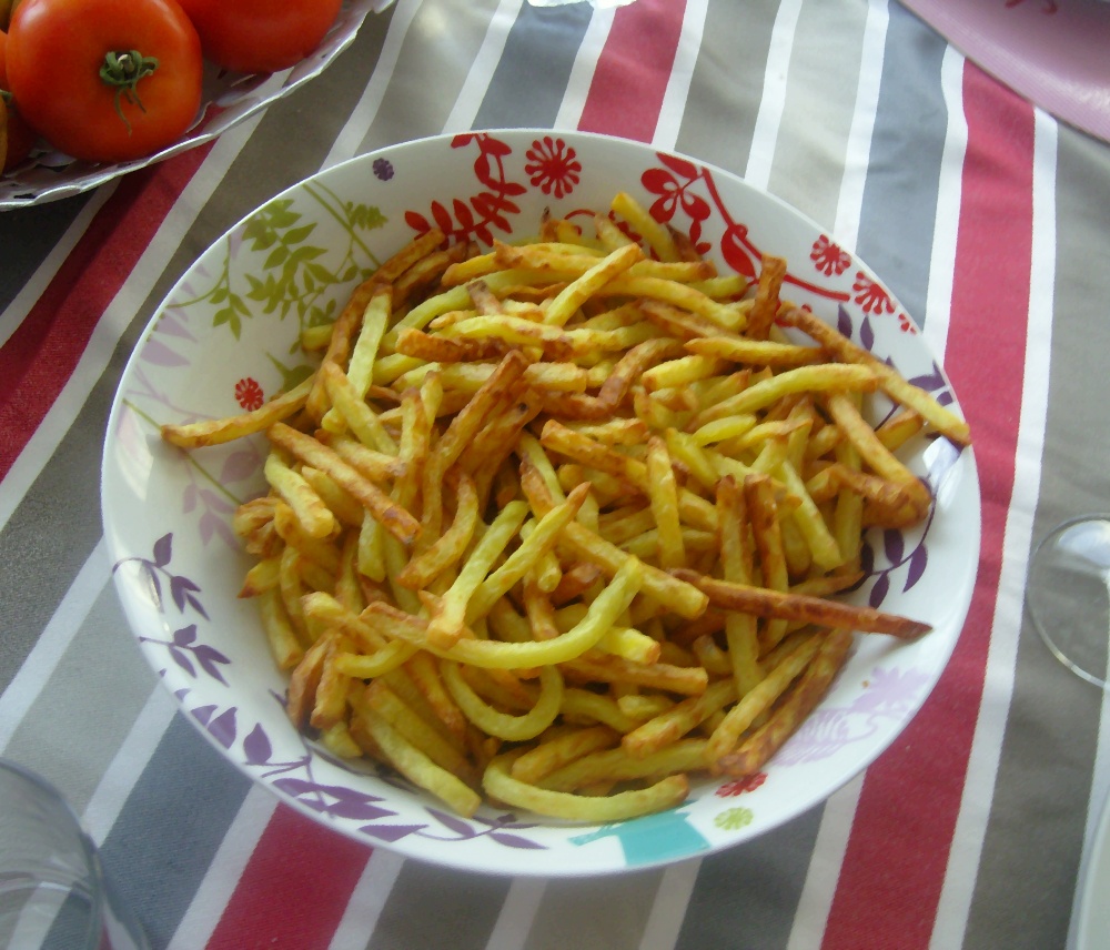 Les frites un incontournable ! Pas uniquement à cause des enfants, les adultes apprécient aussi :- ) et c’est très bon avec certains plats d’étés come le barbecue. J’ai toujours trouvé rébarbatif de faire des frites à la maison. L’épluchage, tailler les frites, la cuisson, l’odeur de friture la gestion de l’huile … et je n’étais jamais vraiment satisfaite. Les produits surgelés au four ou à la friteuse ne sont pas non plus parmi mes préférées. Une exception les frites en étui de chez picard qui se cuisent au micro-onde. Mais bon de bonnes frites maison l’envie me tenaillait.