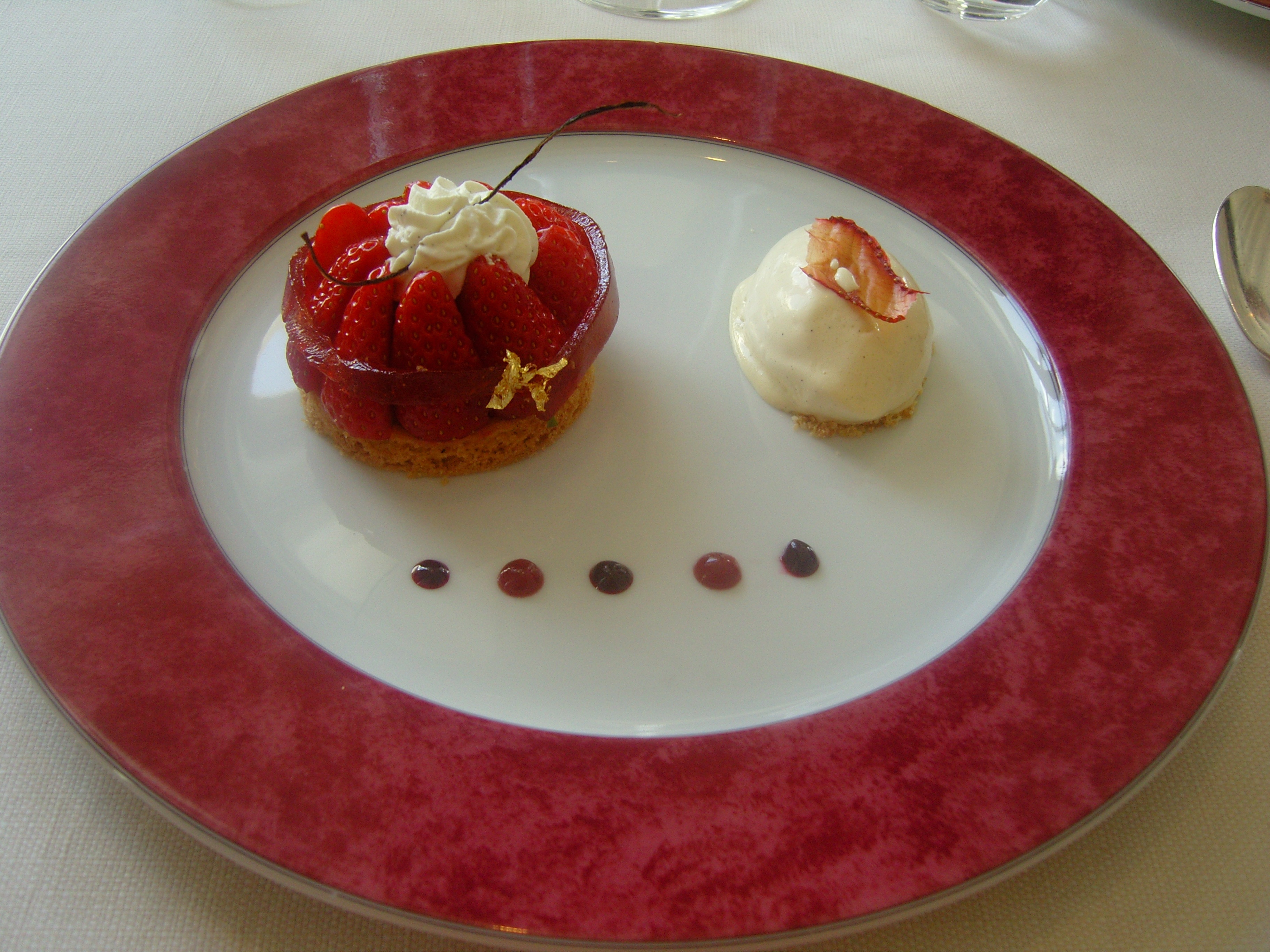 Le service est attachant et sympathique. Pour le dessert ce fût un sablé breton, sa compotée de rhubarbe avec les premières fraises Gariguettes. Ce fût le bémol du repas dessert bien exécuté mais sans transport.