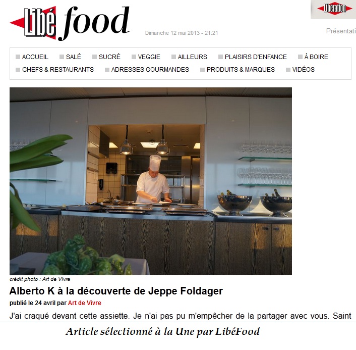 J'ai craqué devant cette assiette. Je n'ai pas pu m'empêcher de la partager avec vous. Saint Jacques et Pomme de Terre servies avec un jus de moules àla crème et livèche le tout recouvert d'oeufs de lompes. Graphiquement superbe, l'assiette est astucieusement choisie à la fois dans sa matière et sa couleur. Elle renforce le coté saveurs au naturel du plat même s'il est relativement sophistiqué. Je ne vais pas vous mentir ce n'est pas moi qui ai créée cette assiette mais Jeppe Foldager. Un chef danois fort connu qui a réçemment gagné la médaille d'argent du Bocuse d'or. Il vient de reprendre les rennes