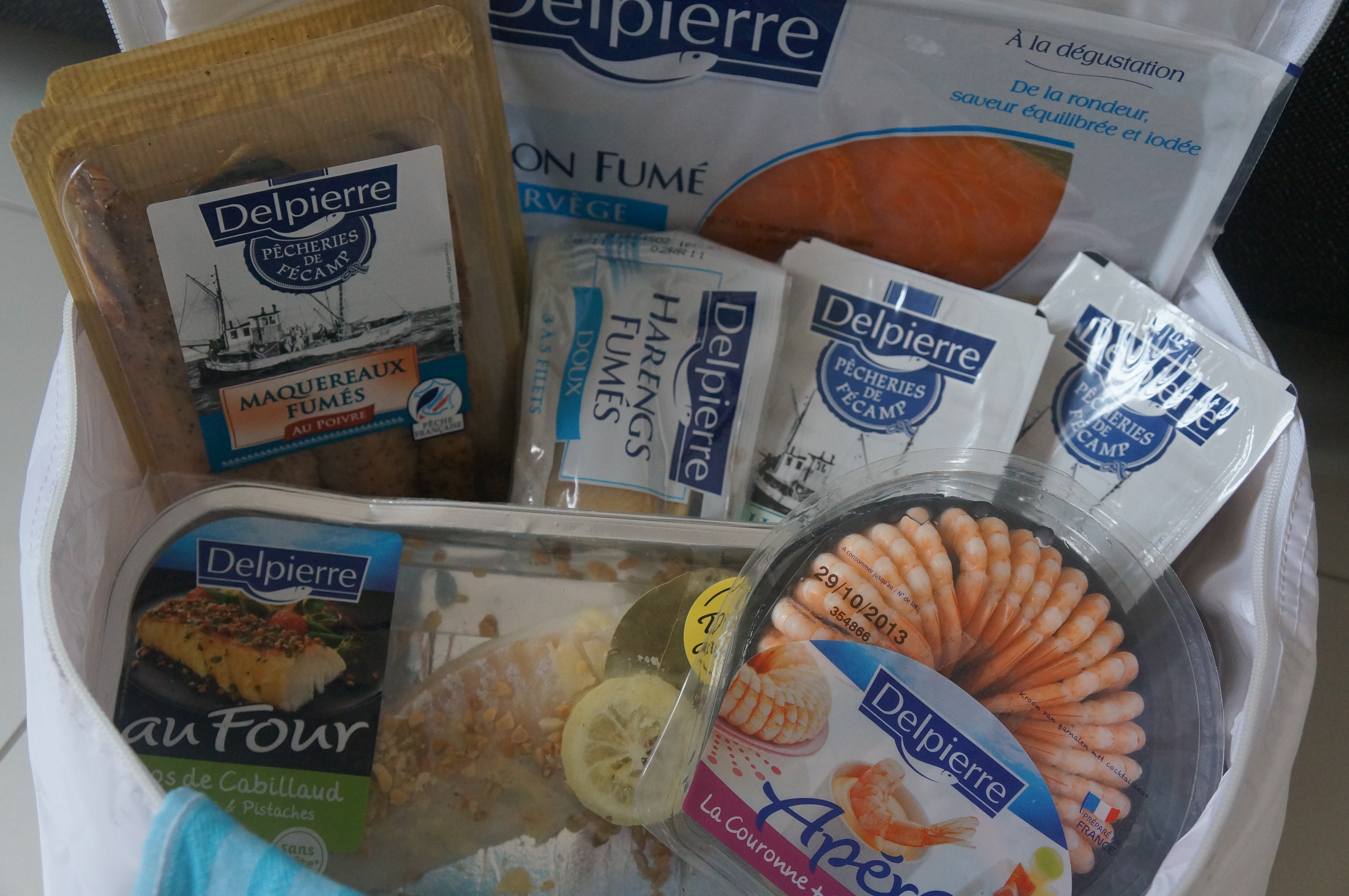 sites de transformation/production sont en France. Ils lançent régulièrement de nouveaux produits autour de la mer. Cet été leur saucisse de saumon plaisaient plus à mes enfants que les tradionnelles chipolatas. Leur barquette d'aluminium spéciale grillades vous permettait de cuire au barbecue de délicates brochettes ou des files de poissons fragiles tel le rouget. Bref on est loin d'une marque assise sur ses acquis. Julie m'a gentiment fait parvenir un colis plein de bonnes choses sans demande de contrepartie. J'ai testé le cabillaud amandes-pistaches qui a fait l'unanimité à la maison. Très pratique en 12 minutes s'est servi. Le poisson garde sa texture mais n'est pas sec. Le croustillant des fruits secs melé au beurre basilic et au citron fonctionne bien. Pour les autres produits. Nous ne ne pensons pas toujours à cuisiner du harengs mariné, du maquereaux fumé … C'est vrai que c'est déjà bon nature. Dès demain je partage avec vous une première recette inspirée par Delpierre …. Nous allons faire le plein d'Oméga 3 !