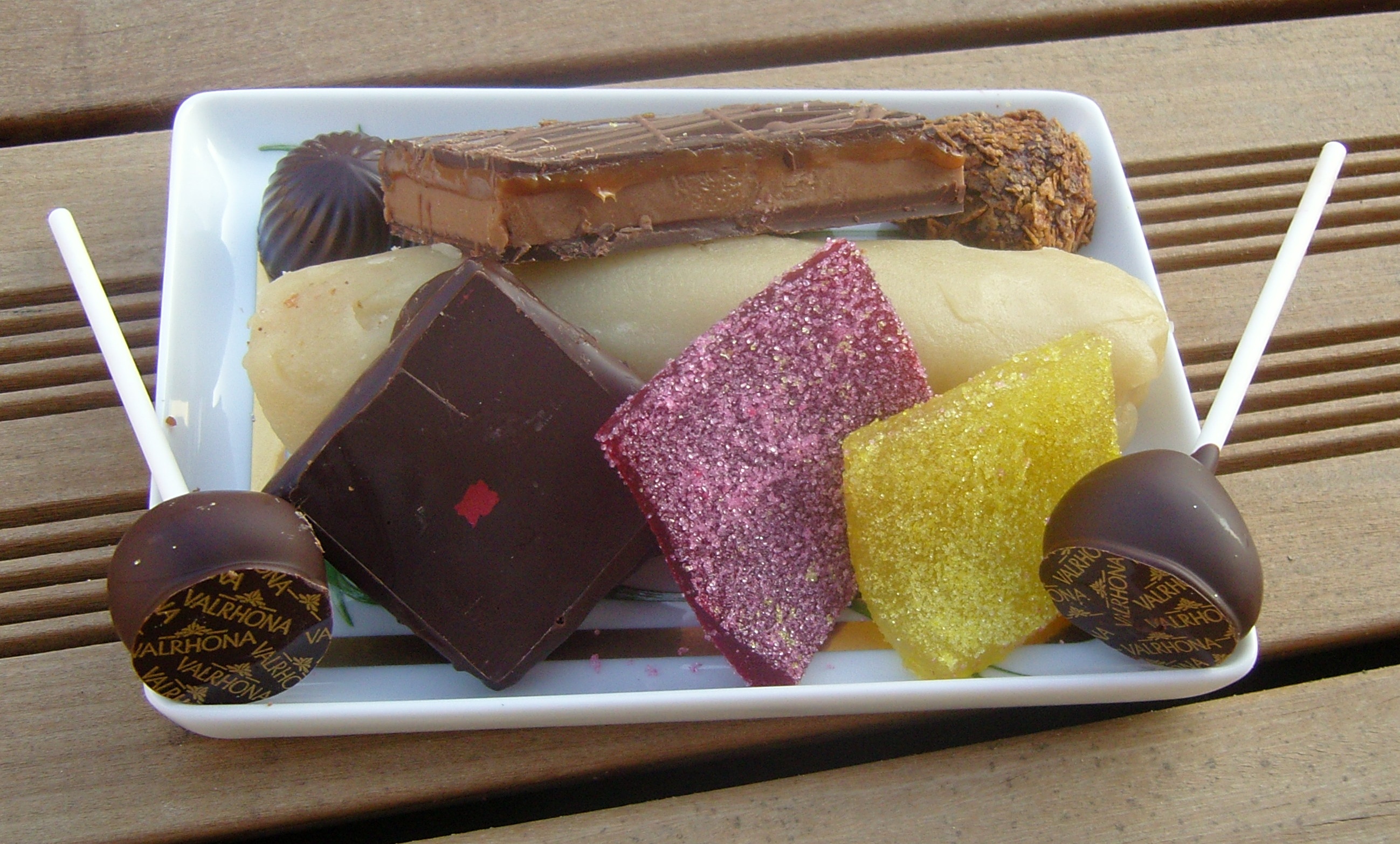 Il y a un peu plus d'un an j'avais réalisé le cours Chocolatissime chez Valrhona avec Julie Hautbourdin. J'avais adoré ce cour notamment grâce à la bonne humeur et la pédagogie de Julie. Ils ont aussi un cours où l'on apprend à réaliser des pâtes de fruits et des bonbons de chocolat. Les cours sont à présent donnés par Sébastien Curtalin. Aussi étonnant que cela puisse paraître j'ai retouver cet enthousiasme, la bonne humeur, l'envie de donner de partager et le tout dans la bonne humeur. Pâtes de fruits, bonbons de chocolat ce fût le programme de ma journée 🙂 Ca n'a l'air de rien mais en fait on réalise énormément de créations. Alors dans le désordre :