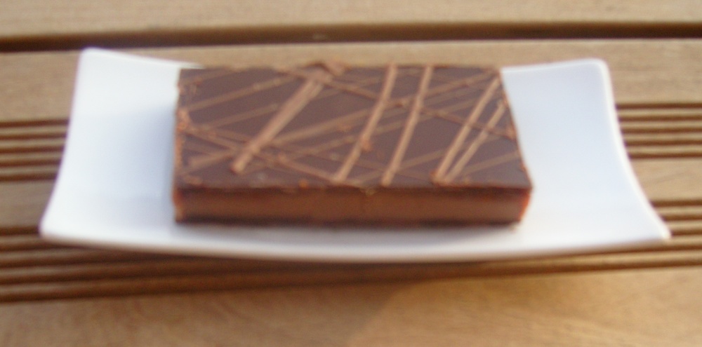 - et un Caramel Praliné montée de sa Ganache Earl Grey aux Fleurs Bleues surmontés d'un glacage au chocolat.