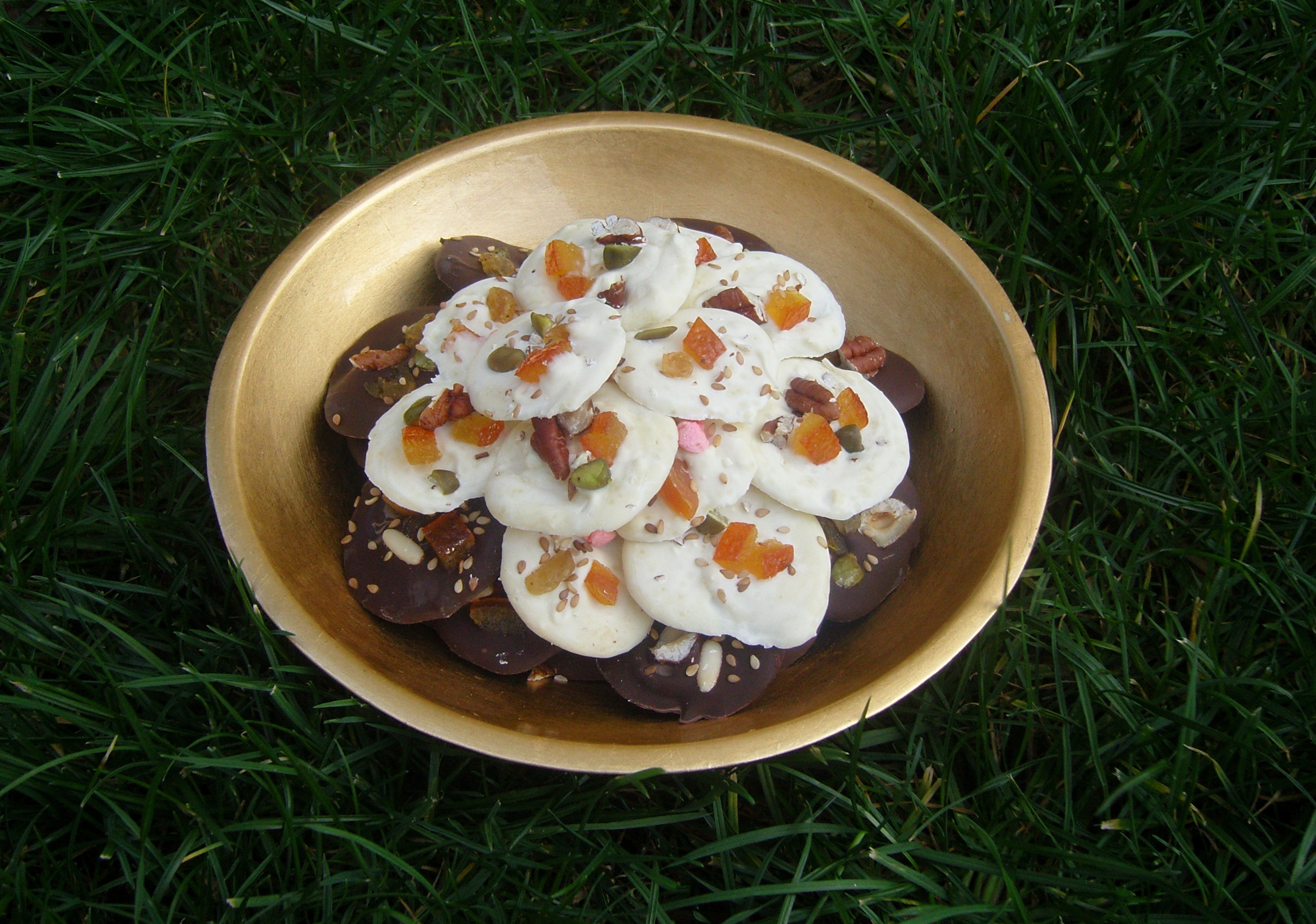 La coupelle m'a été offerte il y a deux ans avec des chocolats dedans. Je n'avais pas eu le coeur de la jeter me disant qu'elle servirait bien un jour. C'est chose faîte !